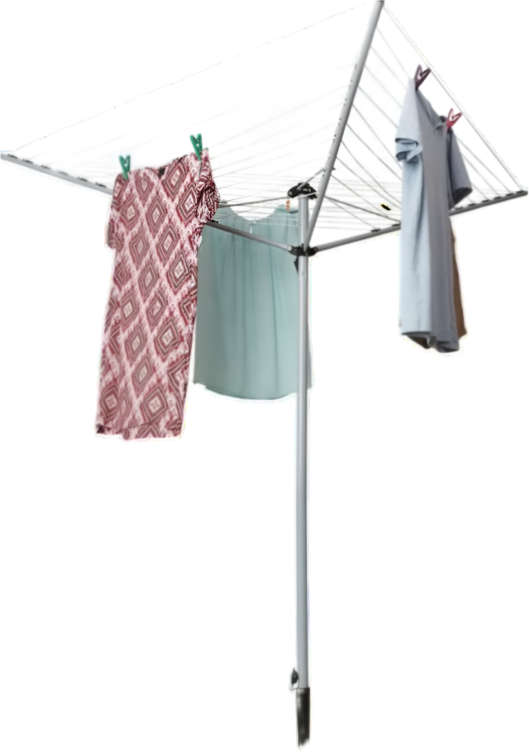 Rotating clothes line. Easily move your washing line as the sun moves, or collapse the washing line and store it away out of site.
